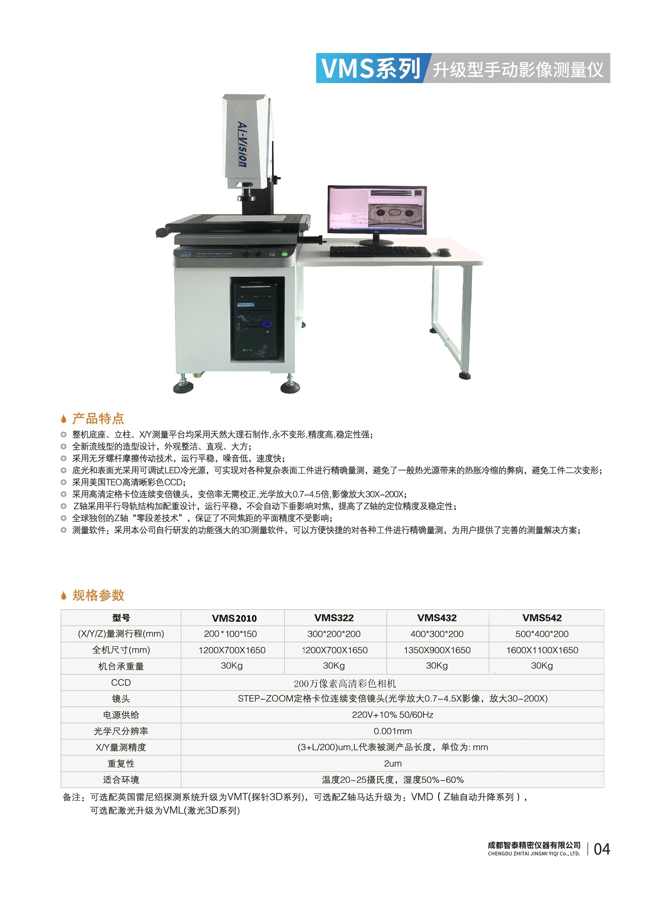 成都智泰精密儀器有限公司專注于精密測量儀器,人工智能,智能制造領(lǐng)域,專業(yè)從事智能視覺自動化檢測解決方案的貿(mào)易型企業(yè)。公司成立于2011年,位于天府之國成都,現(xiàn)有行業(yè)精英十余人,辦公倉儲面積200余平米。 公司主要產(chǎn)品為精密光學(xué)影像測量儀,精密輪廓形狀測量儀,精密機(jī)器人定位系統(tǒng),精密智能視覺尺寸檢測儀器,精密表面缺陷智能檢測設(shè)備,工業(yè)工程特種機(jī)器人。 公司憑借過硬的技術(shù)實(shí)力和產(chǎn)品方案,率先進(jìn)入智能視覺自動化檢測領(lǐng)域,推廣以精密智能視覺自動化檢測為基礎(chǔ)的機(jī)器人自動化應(yīng)用,公司不斷整合上下游的資源,擁有巨大的全產(chǎn)業(yè)鏈優(yōu)勢。客戶群體覆蓋了我國精密制造業(yè)的多數(shù)領(lǐng)域,包括航空、航天、軍工、汽車、新能源、光伏、食品,精密電子、精密機(jī)械、模具、PCB、LCD、五金、塑膠、醫(yī)療、教育、計量及科研院所等行業(yè)。 公司創(chuàng)新的產(chǎn)品能滿足生產(chǎn)與制造行業(yè)客戶的要求,訓(xùn)練有素的工程師能及時提供多種技術(shù)服務(wù),如解...